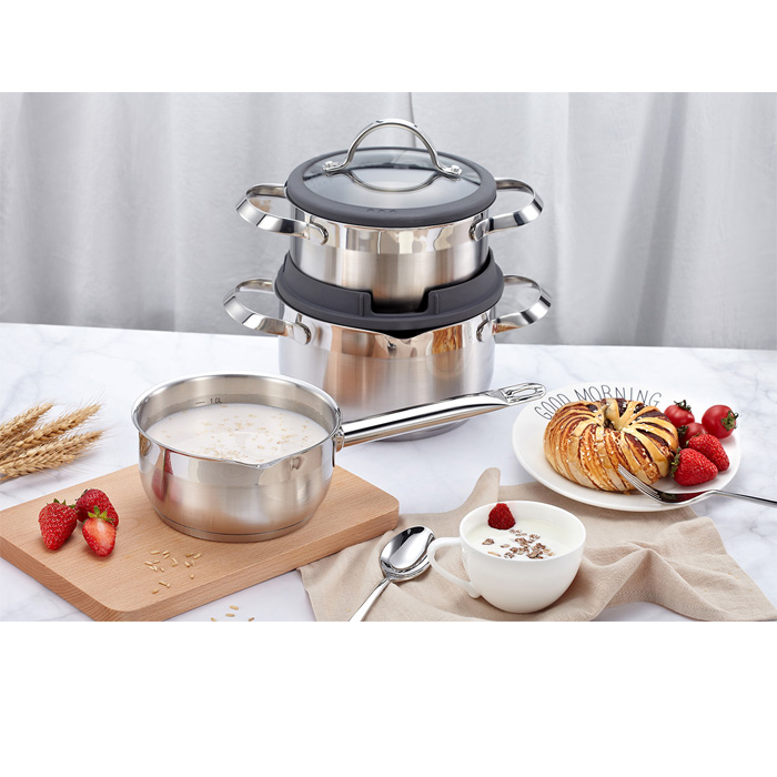 產 品 編 號 :HD-BT1809C系 列 :貝妮塔系列鍋內部處理:精細砂光鍋外身處理:鍋口下2cm鏡光帶, 其余精細砂光底 部 :導磁底部把 手 :不銹鋼底 部 :3層復合底內 徑 :18cm內 高 :9 cm